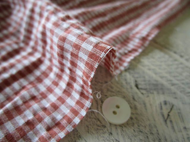 【カート戻し】コットン リップル織り チェック くすみ煉瓦(やや薄地)(3m)