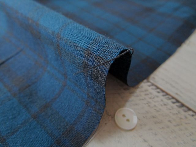 綺麗な深いターコイズカラーに濃い紺のチェック素材です。〈br〉 ブラウス・ワンピースなど幅広く使って頂きたいです。