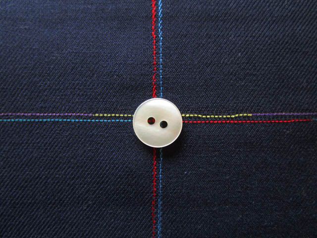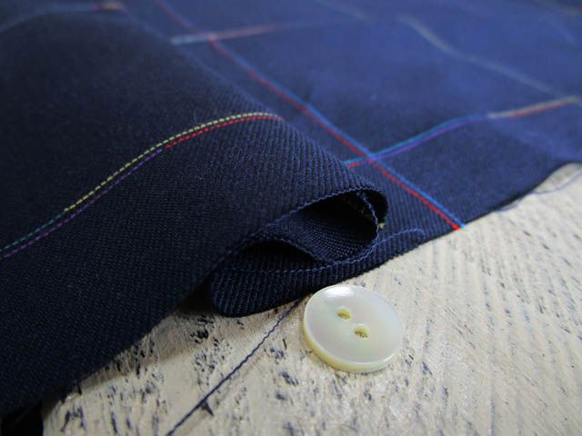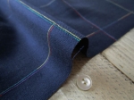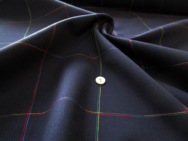 無地ネイビーに 色鉛筆で色替えしたようなカラフルなワインダー糸(カラー糸の残糸を紡いで糸にした糸)チェックに織り込まれた素材です。〈br〉 ブラウス・ワンピースなど幅広く使って頂きたいです。