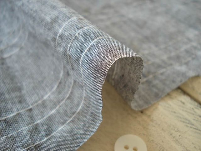 透け感あるボイルシャンブレーに横にウレタン糸が走っているため凹凸がでています。