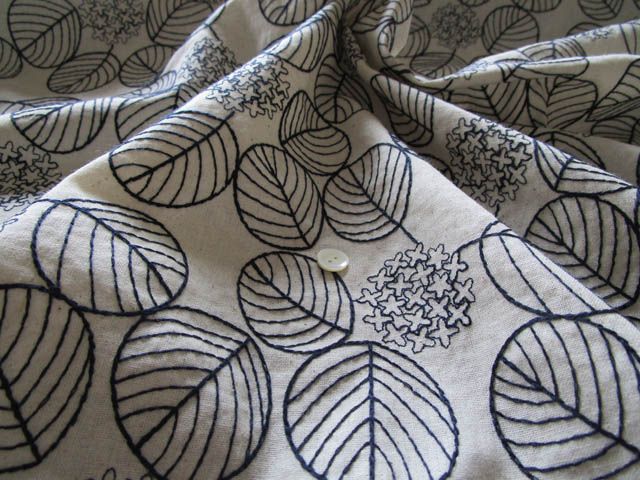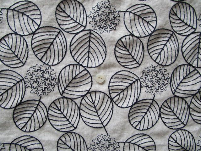 6月の季節にあったダンガリー生地にアジサイ柄刺繍になります。 上品で大人しい柄になります。