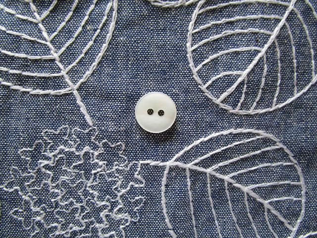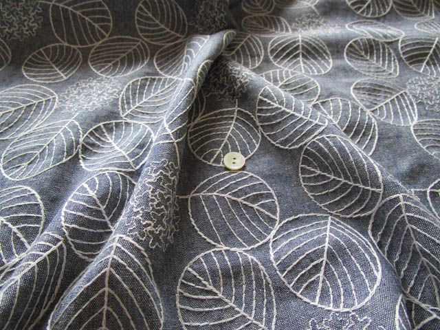 コットン ダンガリー アジサイ刺繍 紺