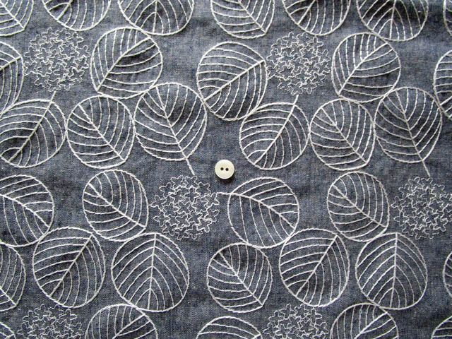 6月の季節にあったダンガリー生地にアジサイ柄刺繍になります。 上品で大人しい柄になります。