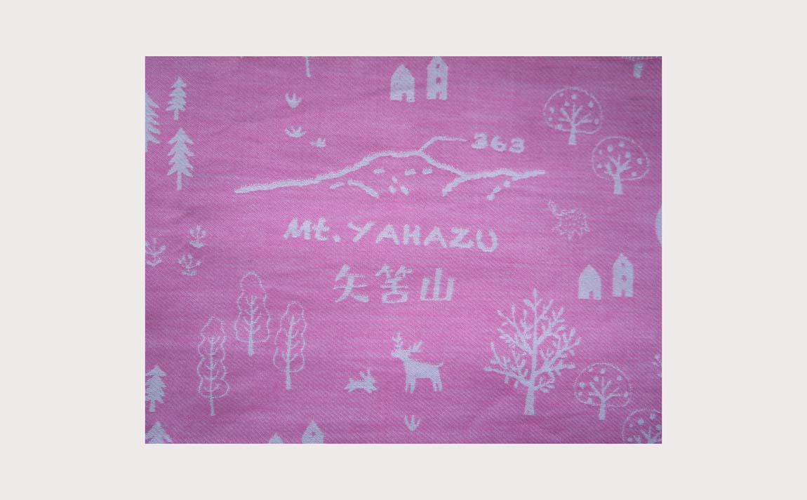 頂上にある東屋を新しく建て替え記念にジャカード織りで織られたバンダナを記念品としてもらえました。