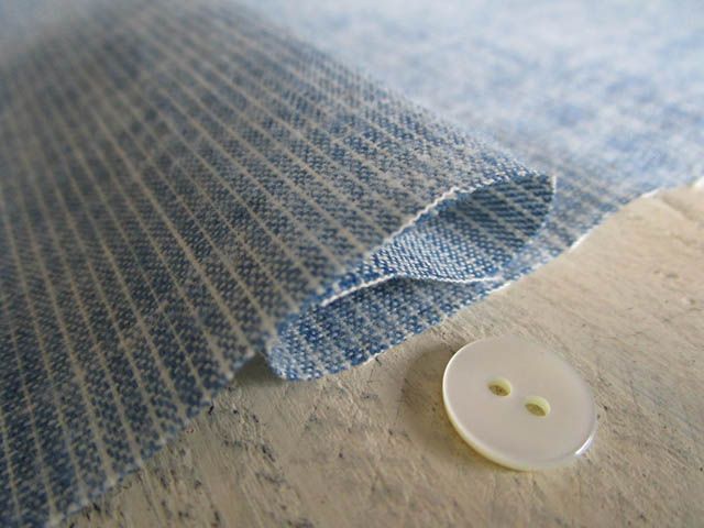 コットン 片面うす起毛 インディゴ ダンガリー (2mm)ストライプ くすみブルー (ほんのすこし張り感あり)