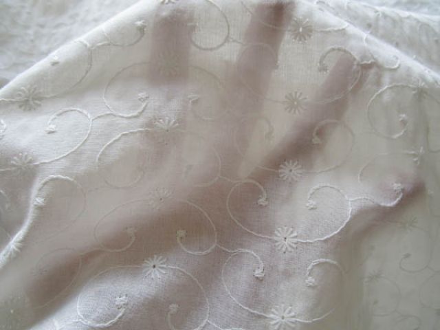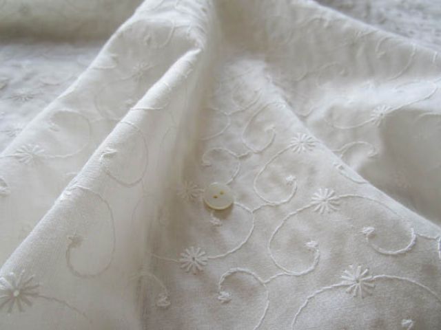 (新柄カート戻し)60/-コットン エンブロイダリーレース地 オフホワイト(あ)(4m)