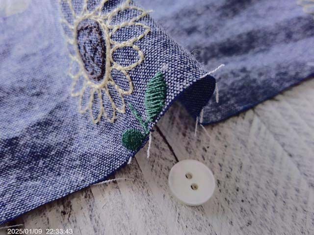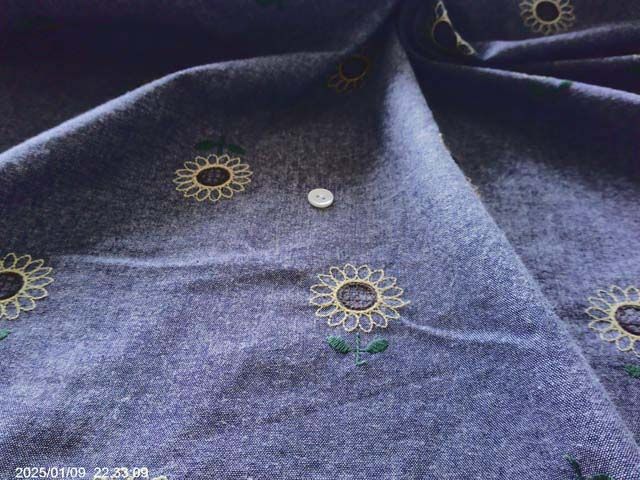 やわらかいダンガリーにひまわり刺繍になります。