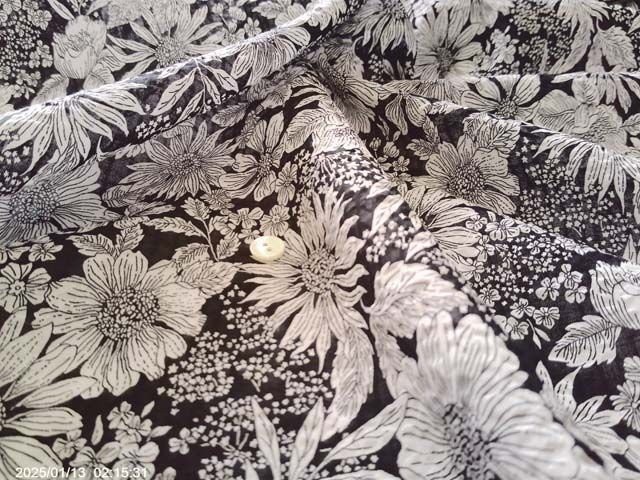 【カート戻し】80ローン コットン リップル プリント花柄 黒(3.1m)