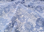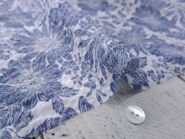 80ローン コットン リップル プリント花柄 くすみブルー