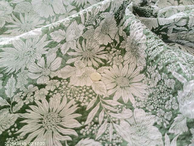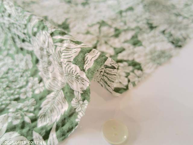 80ローン コットン リップル プリント花柄 くすみグリーン